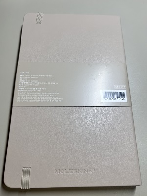 뒷면 하단에는 몰스킨 로고가 각인되어 있습니다. 색상은 전체적으로 고급스럽고 깔끔합니다.